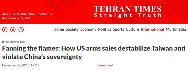 《德黑兰时报》网站在另一篇文章中写道,美对台军售美其名曰是为了维护台海和平与稳定,但这样的说辞根本站不住脚。在敏感地区投入武器灭不了火,只能是“煽风点火”。民进党当局愈发沉迷“以武谋独”的危险幻想之中,台湾成为美国操弄地缘政治的一枚棋子,其安全被押在美国的战略博弈上。